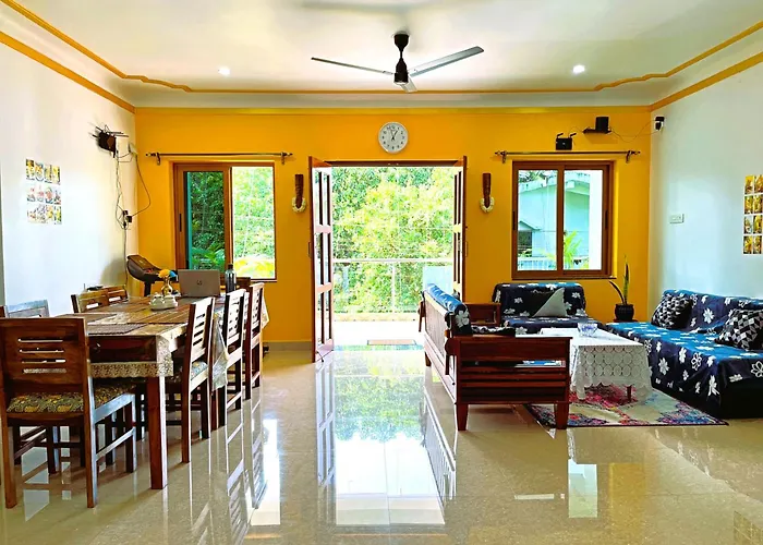 Happy Moon Homestay Aldona oferuje widoki na ogród, a także patio z meblami. Corjuem Fort leży w odległości nie więcej niż 11 min pieszo, a Shri Lairaee Temple jest w 3 km od 7-pokojowego apartamentu.